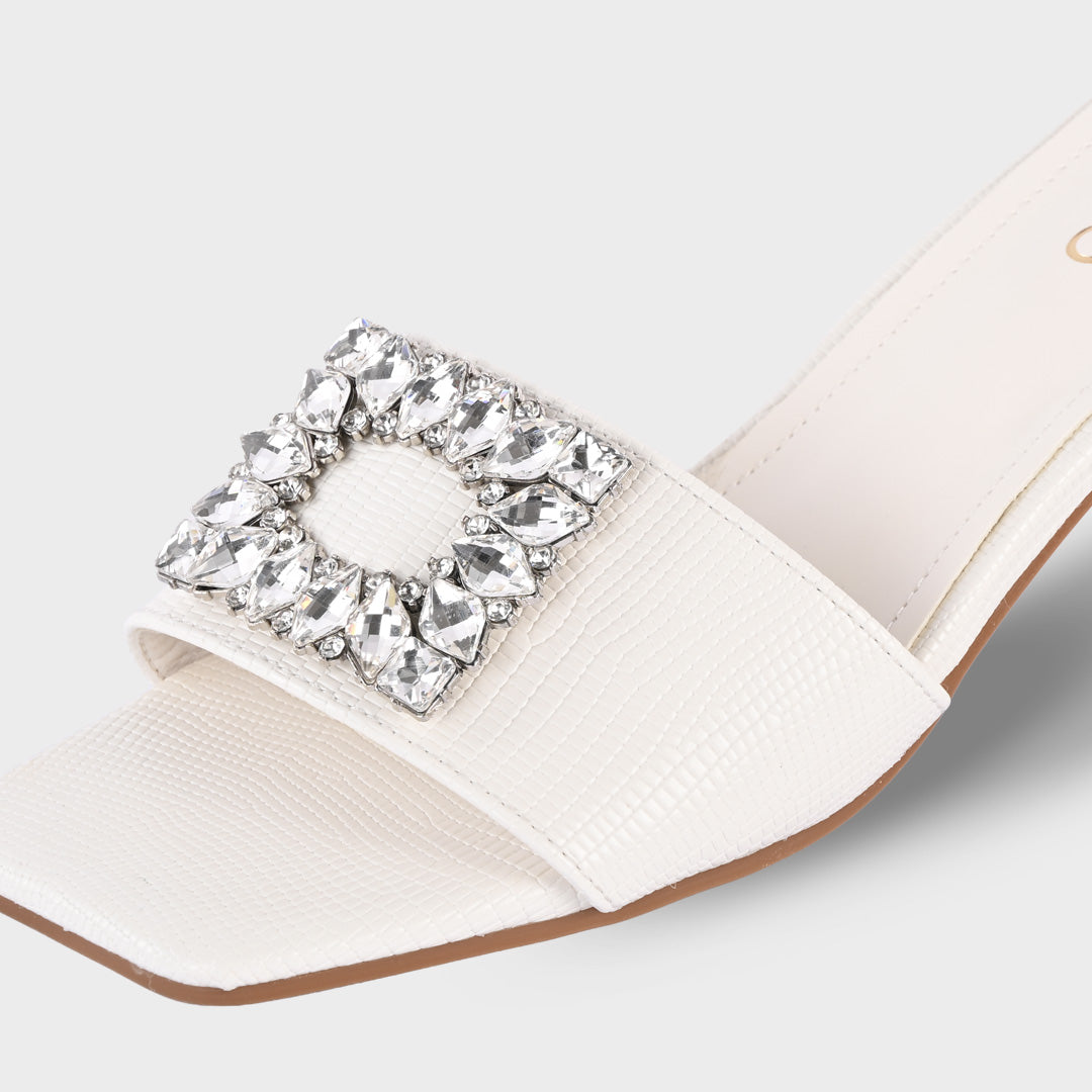 Feature: Heeled Sandals with Crystal Belt Accent