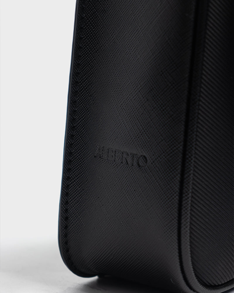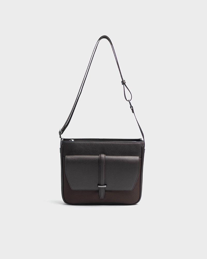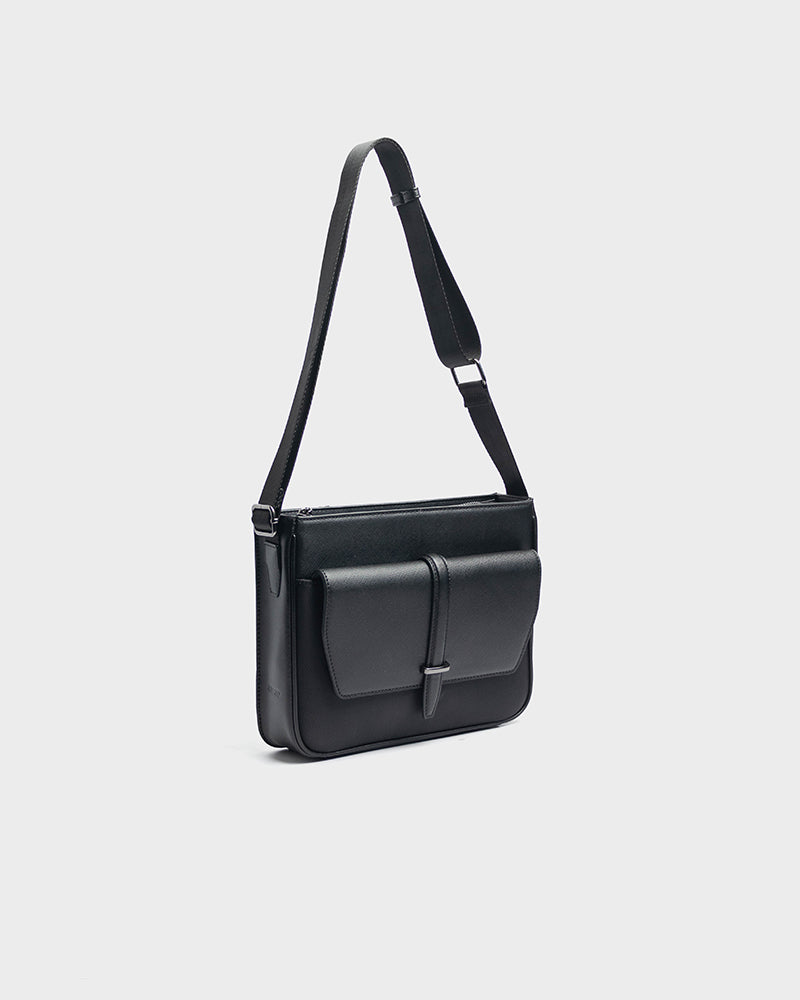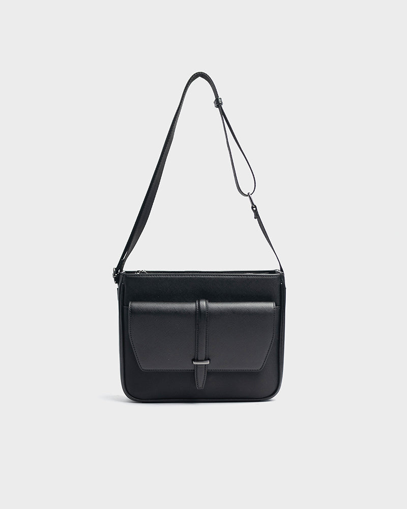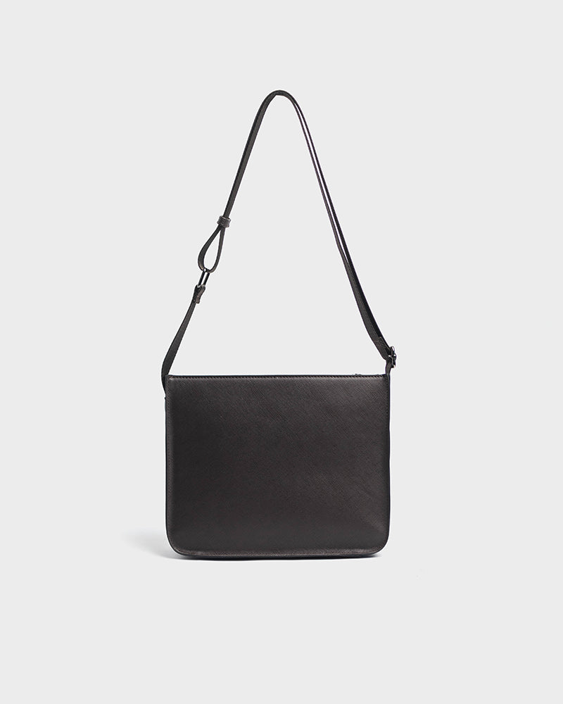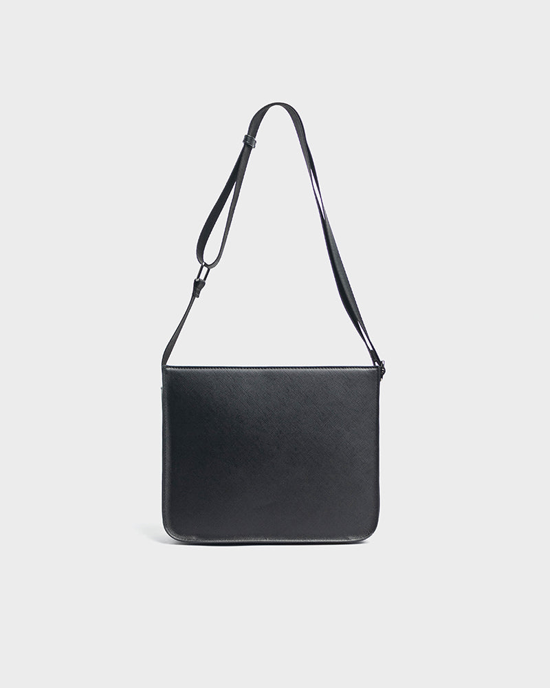 - Solid tone crossbody bag with debossed logo