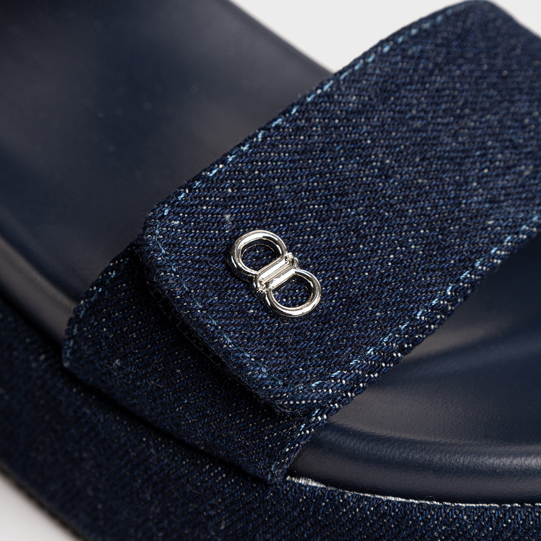Feature: Two-Band Denim Slingback Sandals